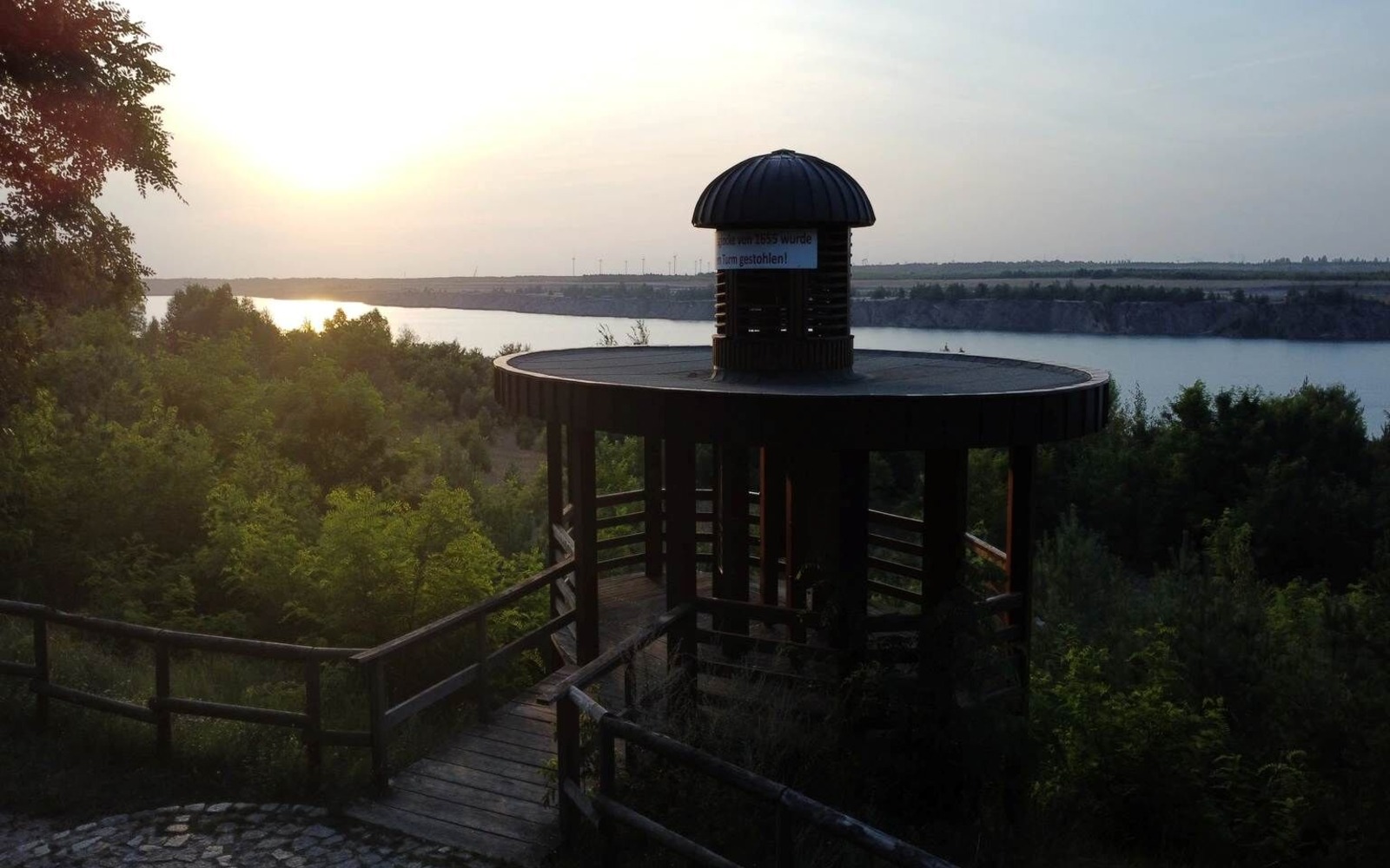 - Aussichtsplattform am Klinger See mit Blick auf den See in Flutung