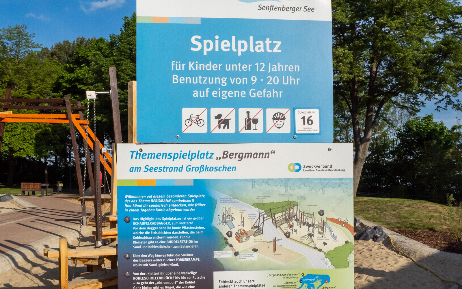 Information board ‘Miner’ themed playground, Foto: Dana Kersten, Lizenz: Touristinformation Senftenberg
