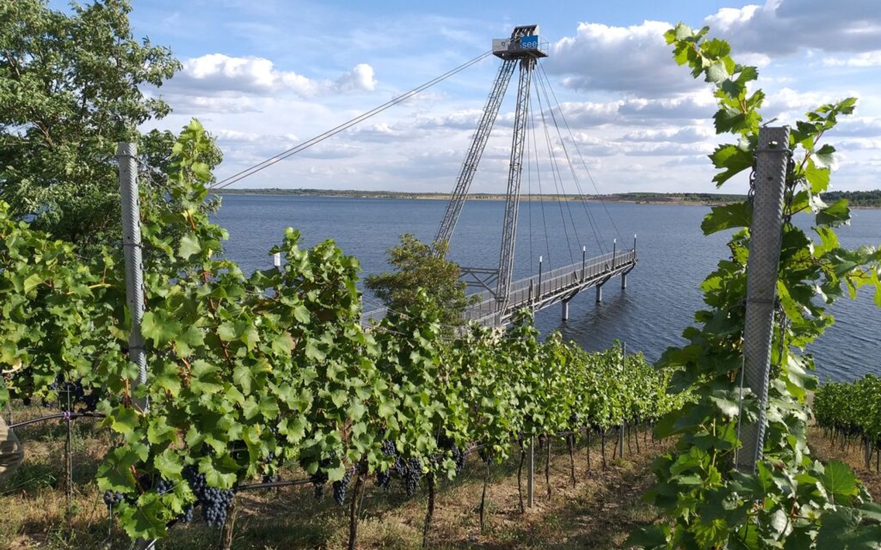 Weinberg und Seebrücke am Großräschener See, Foto: Denise Hoika