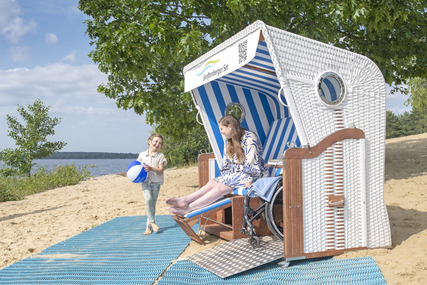 Barrierefreier Strandkorb im Familienpark Senftenberger See, Foto: Nada Quenzel