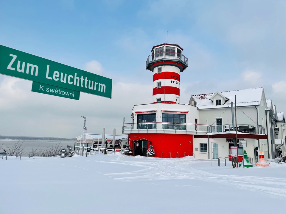 • Foto Geierswalder See mit Leuchtturm-Hotel im Winter(c) Tourismusverband Lausitzer Seenland, Kathrin Winkler (JPG; 9,54 MB)