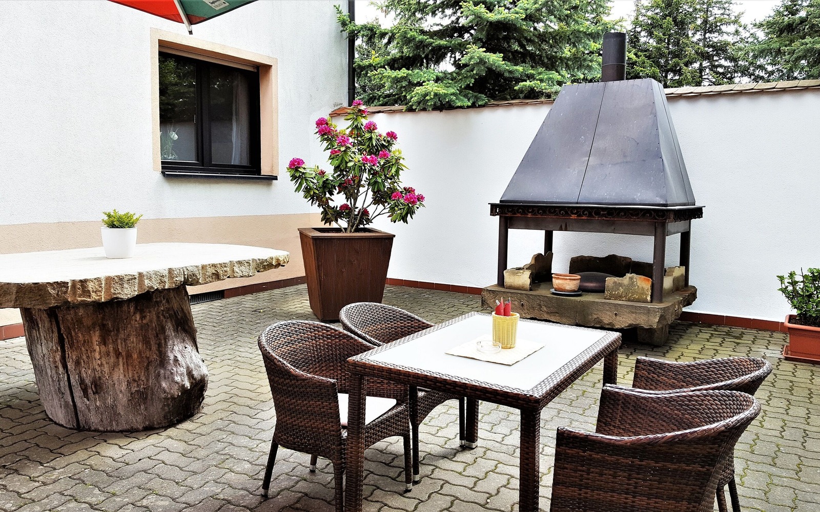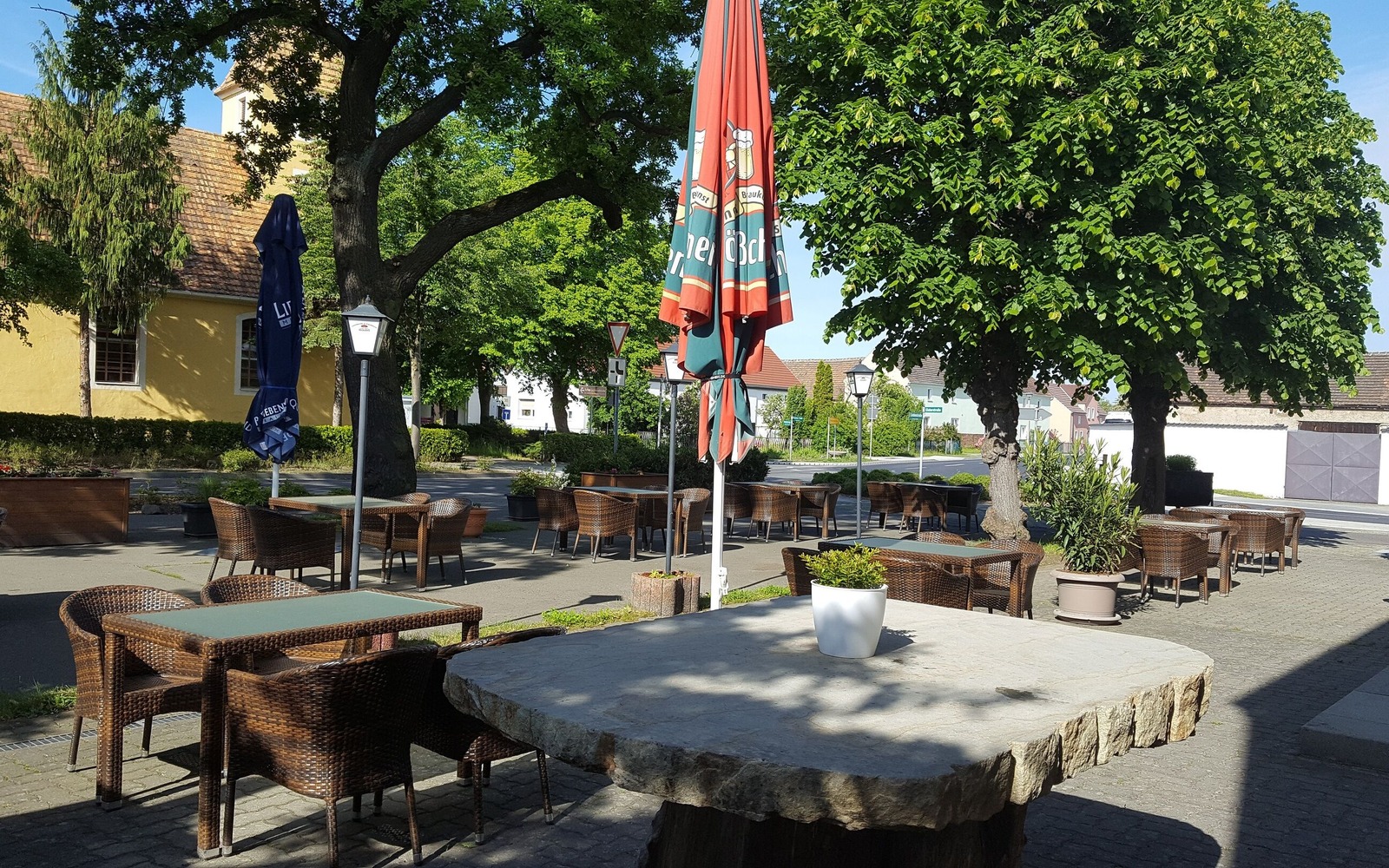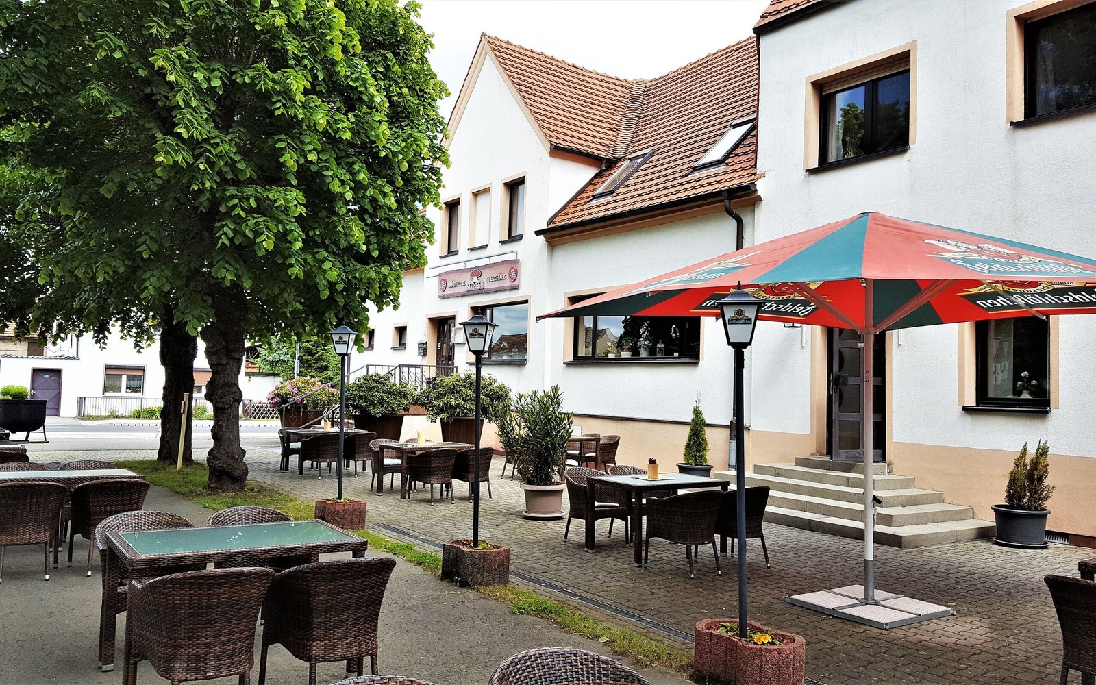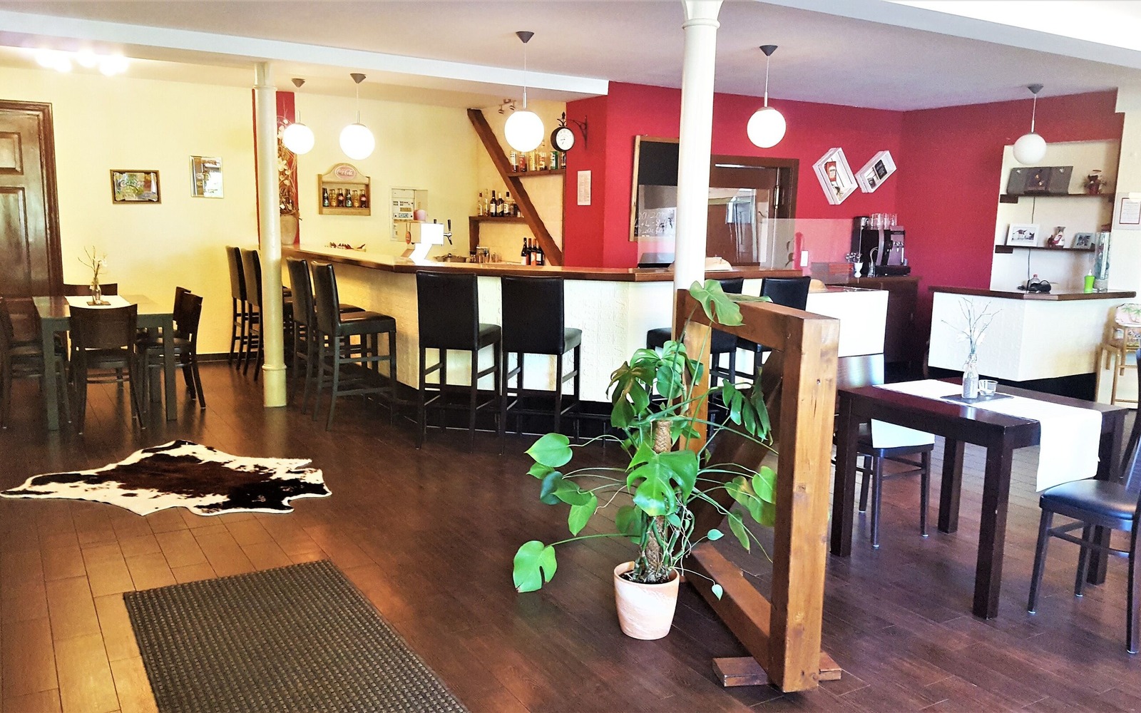 Furthermore, the location offers a club room with 30 seats and a wine bar with 20 seats, which can be used for smaller celebrations. In the large hall, celebrations with up to 120 people are also possible. In summer the beer garden invites to a cool drink. The permanently installed fireplace provides a cozy atmosphere in the outdoor area even on cooler evenings.
